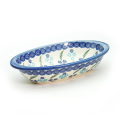 両縁の部分に1cm程度の羽があり、熱くなったお皿をミトンで運ぶときにも抱えやすくなっています。適度な深さで使い勝手も抜群。容量的には、一人分のグラタンなどに丁度良いサイズです。葡萄や西瓜などフルーツを装ったり、様々にご利用いただけます。