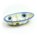 両縁の部分に1cm程度の羽があり、熱くなったお皿をミトンで運ぶときにも抱えやすくなっています。適度な深さで使い勝手も抜群。容量的には、一人分のグラタンなどに丁度良いサイズです。葡萄や西瓜などフルーツを装ったり、様々にご利用いただけます。