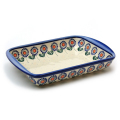 TOPオーブン皿・グラタン皿 スクエア(大) "Lasagne Pan"という名前のスクエアタイプのオーブン皿。ファミリー向けの容量です。両縁の部分に2cm弱程度の羽があり、熱くなったお皿をミトンで運ぶときにも抱えやすくなっています。日本製のオーブンにも入る大きさだと思います。ひまわりをモティーフにした元気でポップな絵柄は、花と茎、そして葉の配置のバランスにおいてとても完成度の高い意匠です。 高さ 4cm φ20.5cm×29.5cm WIZA社製 オーブン皿・スクエア・大(W225-132) 価格: ¥11,000 (税込) 販売期間: 数量: 枚 在庫: × 在庫 × 返品についての詳細はこちら 商品詳細 大きさ 20.5cm x 29.5cm 高さ 4cm 製造元 Ceramika Artystyczna WIZA(ヴィザ) 生産国 ポーランド