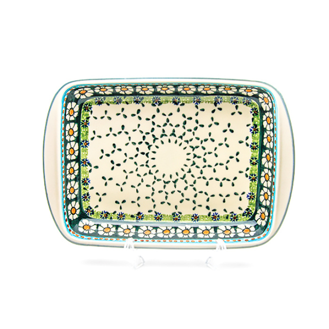 ヴィザ社のデザイナーAdam Jop(アダム・ヨップ)氏によって作られたポーリッシュポタリーの有名な柄です。青系が多いポーリッシュポタリーの中ではちょっと珍しいグリーン系で、「カモミール」がモティーフとなっており、男女を問わない人気を持っています。