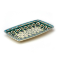 小さめの長方形のお皿。いわし、ししゃも、そして鮭など切り身のお魚が無理なく置けるサイズ感です。高台部分までなだらかに深さをとってあるので、いわしの梅煮など多少煮汁がある料理にも安心です。小ぶりで重ねやすくスペースをとらないところも◎。卵焼きを切って置いたり、和食器としての使い方が似合うポーリッシュポタリーです。