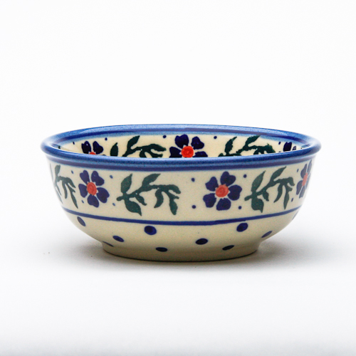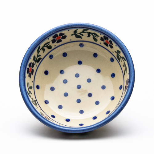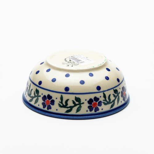 底が平らになっているボウル。サラダや果物等は勿論ですが、1人前のおかずの盛り付けにも程よい大きさです。見込み部分にも丁寧に絵付けされているポーリッシュポタリーらしい食器です。サイズ的にも大変使い道が広いので、「かなり使える!」との声をいただいています。私はこのボウルを見たときに、すき焼きの取り皿に良さそうな大きさだなと思いました。