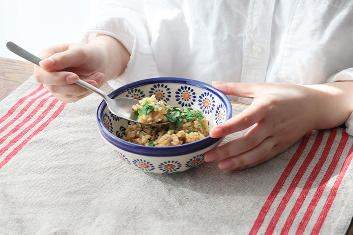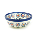 ボウルの内側(見込み)にも絵付けがされているポーリッシュポタリーらしいボウルです。外側の縁は帯状に垂直な作りで、このフォルムにスタイリッシュな印象を与えています。銘々のスープやシチュー、サラダ、シリアルなどの用途にぴったりで、重ね易い形状のため複数枚でのご利用でもすっきり収納できます。