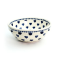 ボウルの内側(見込み)にも絵付けがされているポーリッシュポタリーらしいボウルです。外側の縁は帯状に垂直な作りで、このフォルムにスタイリッシュな印象を与えています。銘々のスープやシチュー、サラダ、シリアルなどの用途にぴったりで、重ね易い形状のため複数枚でのご利用でもすっきり収納できます。