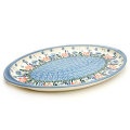 このタイプの大皿は、1枚はあると何かと重宝します。ざっくりと何かを盛っておく、例えば茹でたてのカニやトウモロコシ、大人数分の餃子、スイカやメロンも切って盛っておけばあとはご自由にお取りください、という便利さです。スーパーなどでパック売りされている握り寿司や、カットされたケーキなどを幾つも並べる時に、パックやケーキ箱からこの大皿に移し替えるだけでも気分がガラッと変わります。
