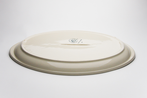 このタイプの大皿は、1枚はあると何かと重宝します。ざっくりと何かを盛っておく、例えば茹でたてのカニやトウモロコシ、大人数分の餃子、スイカやメロンも切って盛っておけばあとはご自由にお取りください、という便利さです。スーパーなどでパック売りされている握り寿司や、カットされたケーキなどを幾つも並べる時に、パックやケーキ箱からこの大皿に移し替えるだけでも気分がガラッと変わります。