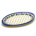 このタイプの大皿は、1枚はあると何かと重宝します。ざっくりと何かを盛っておく、例えば茹でたてのカニやトウモロコシ、大人数分の餃子、スイカやメロンも切って盛っておけばあとはご自由にお取りください、という便利さです。スーパーなどでパック売りされている握り寿司や、カットされたケーキなどを幾つも並べる時に、パックやケーキ箱からこの大皿に移し替えるだけでも気分がガラッと変わります。