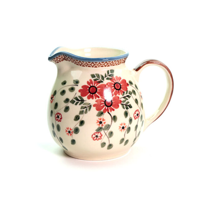 ジュースは勿論、コーヒーやミルクティーの時間にたっぷり牛乳を注ぎ、テーブルに置いておけるサイズです。また、スチームミルクを作るにもぴったり。ジャグに牛乳を400-500cc 注ぎ、エスプレッソマシンなどのスチームノズルを入れてそのままスチームし、クリーミーに泡立った牛乳を用意できます。カフェオレやカプチーノには大活躍するサイズです。 公式スペックには0.75Lとありますが、それは縁までなみなみと液体を入れた場合で、実際には600cc位までは無理なく入ります。カトラリーを入れてテーブルに登場させたり、ハーブを挿しておいたり、お花を活けてみたり・・・。キッチンに置いてあるだけでもとても素敵です。