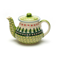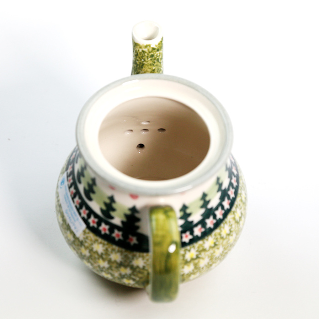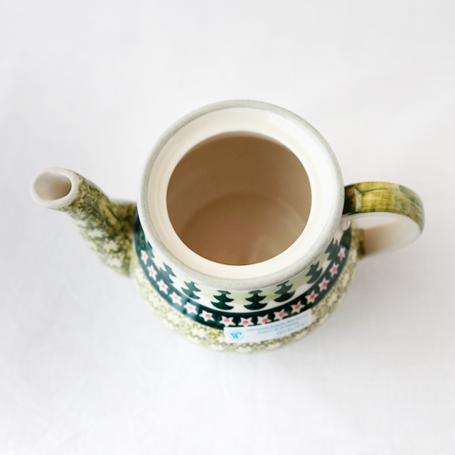 もみの木がモティーフになっているクリスマスにぴったりのデザインです。もみの木のスタンプがとてもWIZA社らしい味を出しています。ポーリッシュポタリーに用いられる色としては比較的少ないグリーン系の配色で、赤いドットがとても効果的に配置されているところも素敵です。眺めているうちに心が和んでくる素朴な温もりに包まれています。