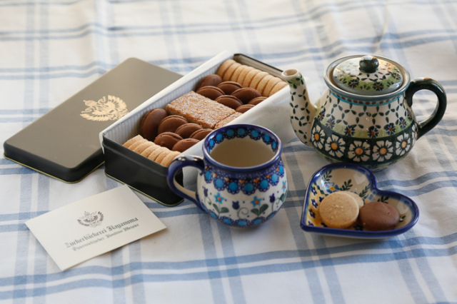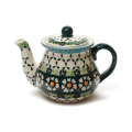 ヴィザ社のデザイナーAdam Jop(アダム・ヨップ)氏によって作られたポーリッシュポタリーの有名な柄です。青系が多いポーリッシュポタリーの中ではちょっと珍しいグリーン系で、「カモミール」がモティーフとなっており、男女を問わない人気を持っています。