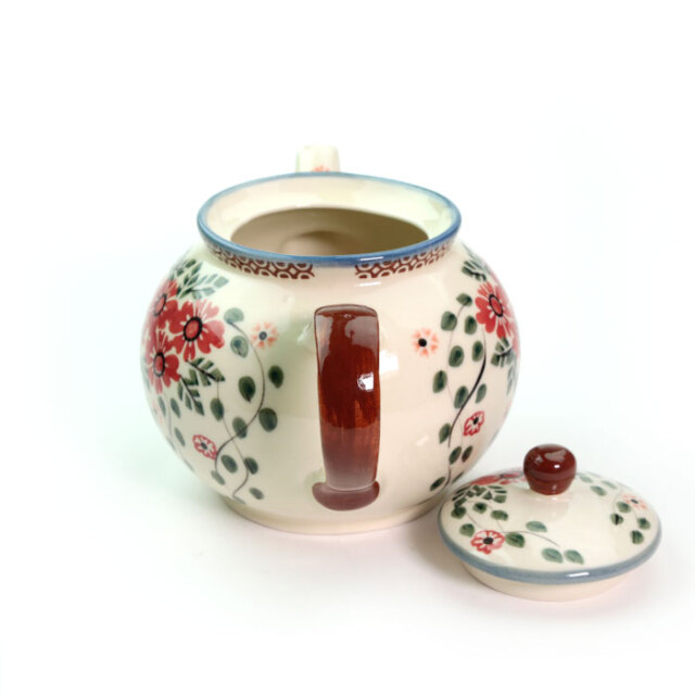 たっぷりサイズのティーポット。満水時の容量は1.0Lなので、実際のご利用時を考えると0.9Lを目処に使うことができます。お客様との語らいの時間にも相応しく、均整の取れたフォルムが印象的です。