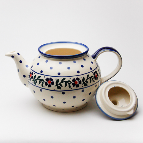 たっぷりサイズのティーポット。満水時の容量は1.0Lなので、実際のご利用時を考えると0.9Lを目処に使うことができます。お客様との語らいの時間にも相応しく、均整の取れたフォルムが印象的です。