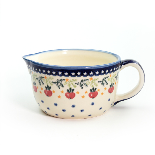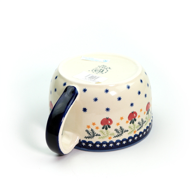 WIZA社らしい素朴な愛らしさとどっしりした作り。冷たいスープを入れてテーブルでサーブするなどの使い方の他、キッチンボウルとしても特におすすめです。オムレツ用の卵を混ぜたり、ケーキの生地を作ったり、生クリームをホイップしたりするのに向いたサイズです。いつもキッチンに置きっぱなしで、ガンガン使うに相応しい丈夫なボウルです。 実際には満水時に約800cc程入れることが可能ですが、現実的な値として0.7Lとお考えください。