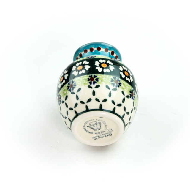 ヴィザ社のデザイナーAdam Jop(アダム・ヨップ)氏によって作られたポーリッシュポタリーの有名な柄です。青系が多いポーリッシュポタリーの中ではちょっと珍しいグリーン系で、「カモミール」がモティーフとなっており、男女を問わない人気を持っています。