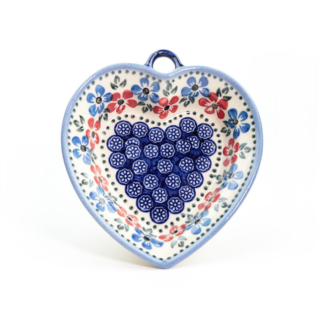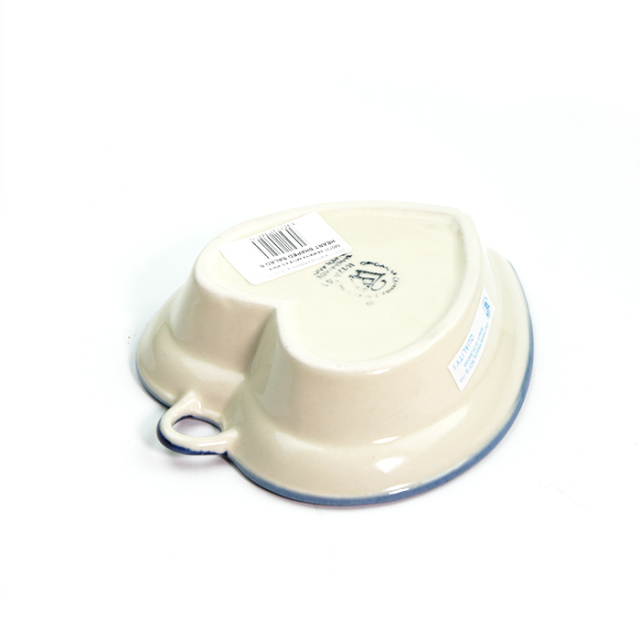 ハート型をした可愛いフォルムのボウル。内側に絵付けされ、ハートの上部には壁掛け用のフックがついています。段差が設けられているので、比較的重ねやすくなっています。 用途は多様で、サラダやフルーツのボウルとしては勿論、ムースやティラミスの冷やし固める型として、またケーキ型としてオーブンに入れることもできます。ユニークな形のボウルですが、普段使いの器としてとてもおすすめです。