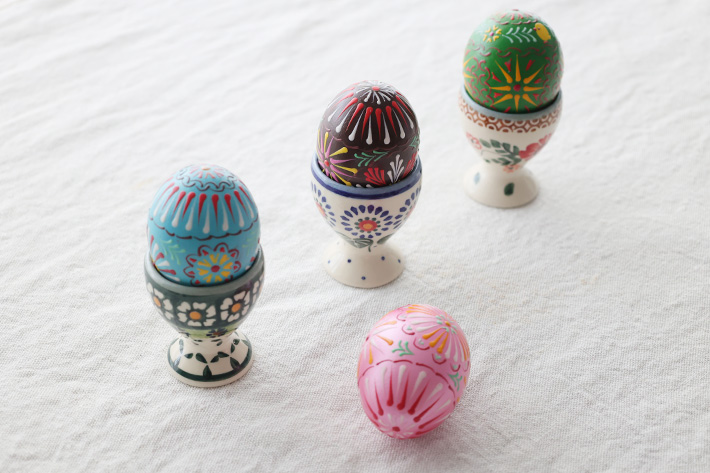何でもない朝食がセンスアップするエッグカップです。小さな器に見られるポーリッシュポタリーのエッセンスの凝縮感は、ワクワクと嬉しくなる気分を盛り上げてくれます。元気な1日のスタートに、卵好きのお友達への贈り物におすすめです。イースターエッグを飾るために使っても素敵です。