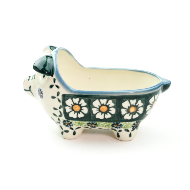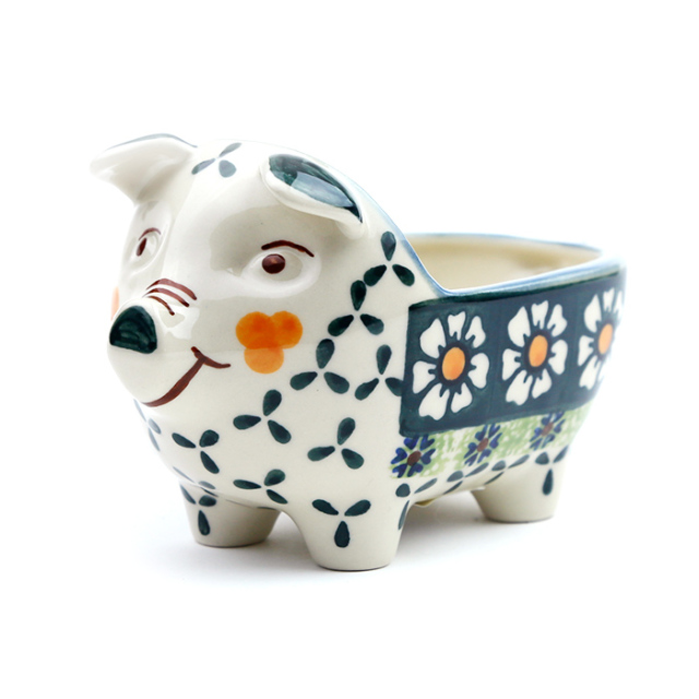 このピギーの顔も全て手描きで、頬のスタンプや目元や口元などの筆遣いによってひとつひとつに個性が光っています。このポーリッシュポタリーらしい特徴も楽しんでみてください。