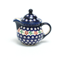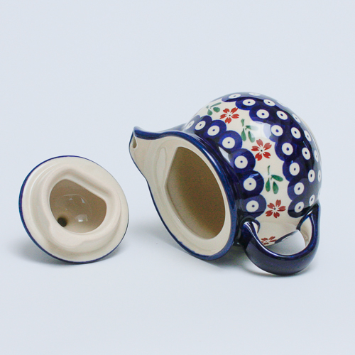 ポーリッシュポタリーの伝統的な「ピーコックアイ」と桜やコスモスを思わせる花のスタンプが組み合わさったハイスタンダード柄。絞られた色数と配色で、愛らしさがプラスされたバランスの良いパターンデザインです。同じくピーコックアイが用いられた166Aの柄と揃えて使う方も多く、組み合わせて贈り物としてのご利用もおすすめです。