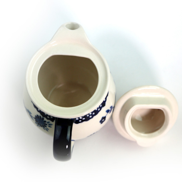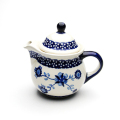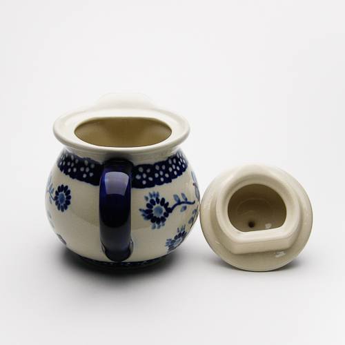 この花の模様は、実は歴とした伝統あるパターンデザインです。白地に青色の花の濃淡が映える仕上がりは、美しく上品な雰囲気を持っています。クラシック柄においては珍しく、花弁や枝や葉はスタンプではなく絵筆が多用されているため、同じ柄でも一つ一つが異なる唯一無二のポーリッシュポタリーの特長を強く味わえます。