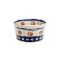 ポーリッシュポタリーの伝統的な「ピーコックアイ」から派生したザクワディらしいクラシック柄のバリエーション。オレンジ色の果実は実はりんご。ポーランド人なら誰しも間違いなくそう答えます。素朴で温かみのあるパターンデザインです。