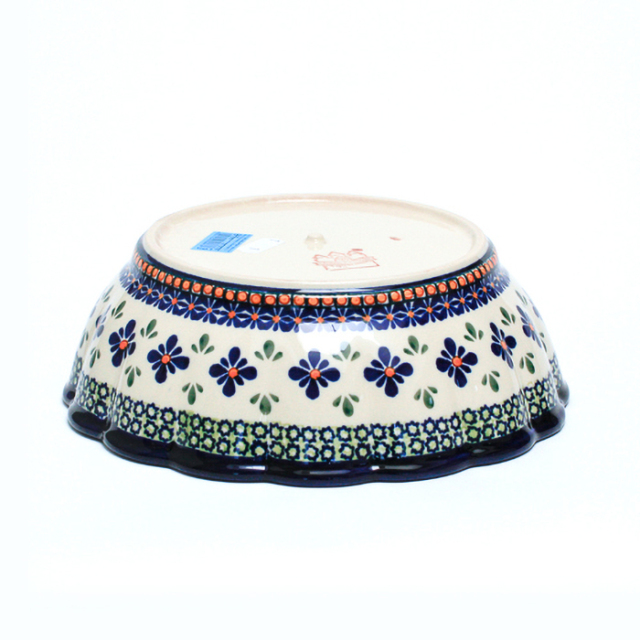 波打つ側面のデザインがエレガントな大きなボウルです。サラダボウルとしては勿論、中華料理や煮物を美しく盛り付けることができます。程よい深さと容量があり、内側にも絵付けが施されているため、夏には素麺用のボウルとして使うのもおすすめです。氷水に漂う白い素麺が美しく映えます。新居の御祝やご結婚の御祝としてのご利用も多い器です。