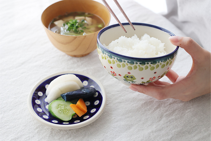 ちょっぴり盛り付けるアミューズに、和食のテーブルではお新香を乗せたり、・・・。お醤油皿や薬味皿には勿論、小さな取り皿としてもおすすめ。ポーリッシュマグの下に引いてソーサーのように使ったり、茶わん蒸しを作ったそば猪口の下に敷いて使うこともできる愛らしい小皿です。