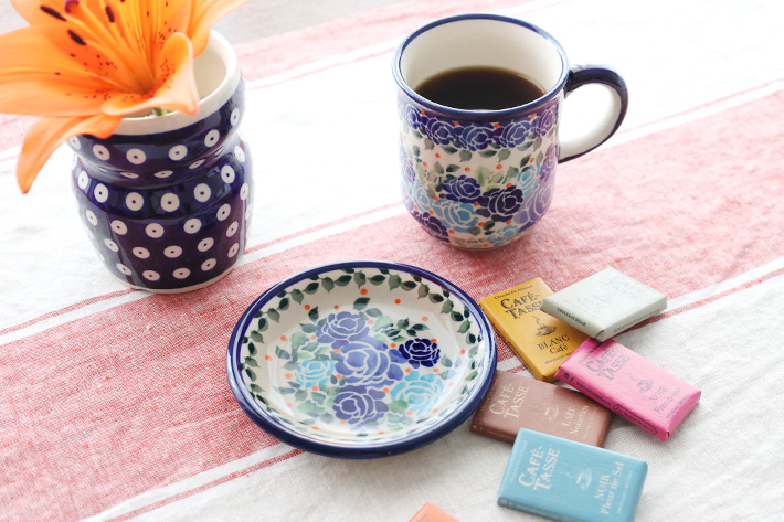 ちょっぴり盛り付けるアミューズに、和食のテーブルではお新香を乗せたり、・・・。お醤油皿や薬味皿には勿論、小さな取り皿としてもおすすめ。ポーリッシュマグの下に引いてソーサーのように使ったり、茶わん蒸しを作ったそば猪口の下に敷いて使うこともできる愛らしい小皿です。