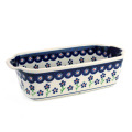 ポーリッシュポタリーらしく外側と内側に丁寧に絵付けされた焼き型です。見た目の美しさだけではなく、熱の回りが緩やかで均一に伝わるためにムラなく焼き上がるという陶器製の特長も持っています。パンなら丁度1斤分の容量です。パウンドケーキ、ミートローフなど焼き上がりをそのままテーブルに出して、またテリーヌなど冷製の型として、この器を楽しんでください。