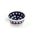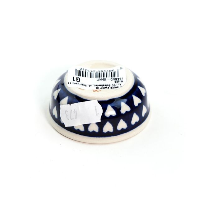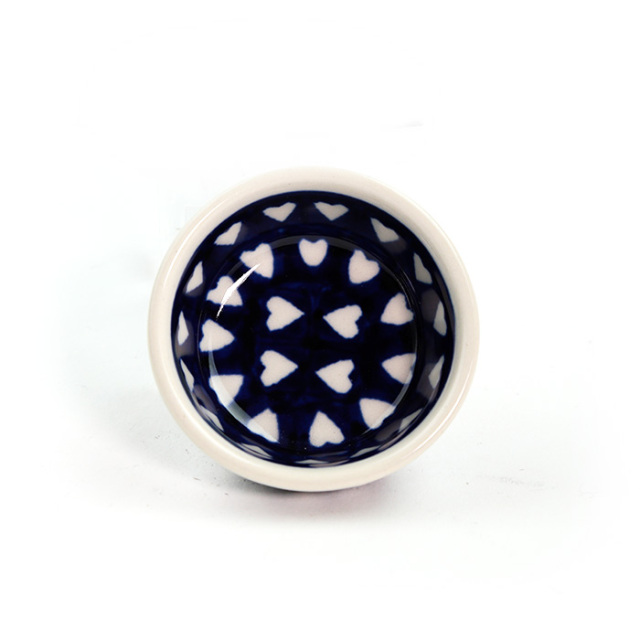 小さいですが、外側だけではなく内側にもちゃんと絵付けがしてあるところがポーリッシュポタリーらしい魅力的な仕上がりになっています。また同じ絵柄でも、大きな器と小さい器とでは描かれ方が違ってくる面白さがあります。オリーブオイル、銘々のバターやジャムを入れたり、少量のお醤油、お新香を一箸、そんな使い方にもぴったりです。小さくて愛らしい贈り物として、複数個を柄違いでお選びいただくのもおすすめです。