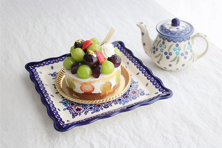 平らな部分には丁度18cmのホールケーキ1台が水平に置けるイメージ。スクエアなフォルムを盛皿として使うと、普段の食卓がとても格好良くなることを実感できます。一枚皿として引き出物やお祝いの贈り物としてのご利用もおすすめです。