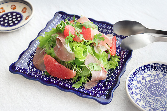 リムの立ち上がりがあるため料理を安定して盛り付けることができます。小さなサイズと同様にザクワディのチーフデザイナーのJanina Bany-Kozłowska(ヤニナ・バニ コズウォヴスカ)さんのこだわる実用性と機能美を兼ね備え、一枚の大皿としての機能性も抜群です。