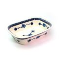 この花の模様は、実は歴とした伝統あるパターンデザインです。白地に青色の花の濃淡が映える仕上がりは、美しく上品な雰囲気を持っています。クラシック柄においては珍しく、花弁や枝や葉はスタンプではなく絵筆が多用されているため、同じ柄でも一つ一つが異なる唯一無二のポーリッシュポタリーの特長を強く味わえます。