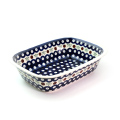 深さが5cm以上あり、リムが少し外側に開いているタイプのオーブンウェアです。重ね焼きするオーブン料理の他、デリ風のサラダ、汁気のある大皿料理にも使えます。どっしりとした風格のあるフォルムに細部まで施された絵付けが贅沢な作りの器です。持ち易い縁の作りは高い実用性を兼ね備えています。