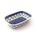 深さが5cm以上あり、リムが少し外側に開いているタイプのオーブンウェアです。重ね焼きするオーブン料理の他、デリ風のサラダ、汁気のある大皿料理にも使えます。どっしりとした風格のあるフォルムに細部まで施された絵付けが贅沢な作りの器です。持ち易い縁の作りは高い実用性を兼ね備えています。