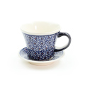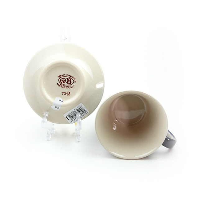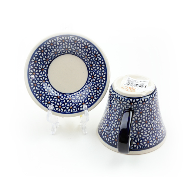 飲み口に向かって反って広がったカップと、反ったリムを持つ径の小さなソーサー。すっきりとシャープでとてもお洒落なフォルムバランスです。北欧からのオファーで考案された比較的新しいフォルムデザインだと話してくれたのは、ザクワディのチーフデザイナーのヤニナさん。コーヒーブレイクがワンランクアップするアイテムです。