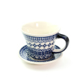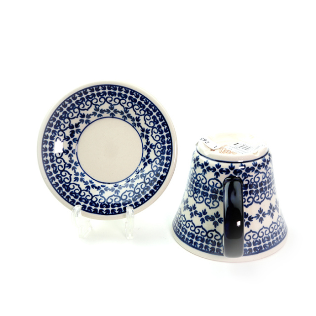 飲み口に向かって反って広がったカップと、反ったリムを持つ径の小さなソーサー。すっきりとシャープでとてもお洒落なフォルムバランスです。北欧からのオファーで考案された比較的新しいフォルムデザインだと話してくれたのは、ザクワディのチーフデザイナーのヤニナさん。コーヒーブレイクがワンランクアップするアイテムです。