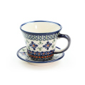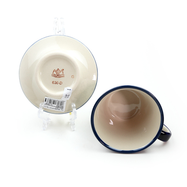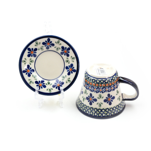 飲み口に向かって反って広がったカップと、反ったリムを持つ径の小さなソーサー。すっきりとシャープでとてもお洒落なフォルムバランスです。北欧からのオファーで考案された比較的新しいフォルムデザインだと話してくれたのは、ザクワディのチーフデザイナーのヤニナさん。コーヒーブレイクがワンランクアップするアイテムです。