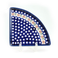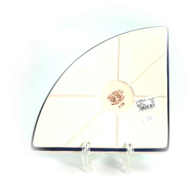Lサイズ(35cm前後)のピザが1/4乗せられる、というユニークなフォルムが楽しいプレート。宅配ピザの取り分け用には勿論、4枚使って大きな円を描くような使い方や、扇形をイメージして和食に使うなど、アイデア次第でとても素敵なテーブルを演出できる優れもの。フラットなプレートで重ねやすいことも特長です。