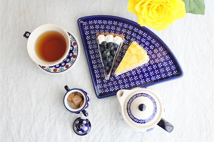 Lサイズ(35cm前後)のピザが1/4乗せられる、というユニークなフォルムが楽しいプレート。宅配ピザの取り分け用には勿論、4枚使って大きな円を描くような使い方や、扇形をイメージして和食に使うなど、アイデア次第でとても素敵なテーブルを演出できる優れもの。フラットなプレートで重ねやすいことも特長です。