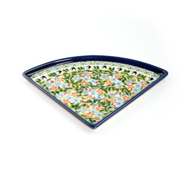 ザクワディのユニーク柄の中で、近年世界的に人気の高まっている柄として紹介されているパターンデザインです。生い茂る新緑の香りが漂ってきそうな色使いの中で、ツバメが飛びかっています。ツバメは、幸福を運んできてくれる鳥としてポーランドの人々から愛されており、この柄を大きく特徴付けています。