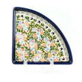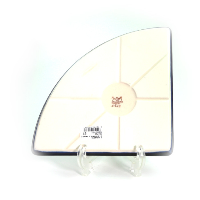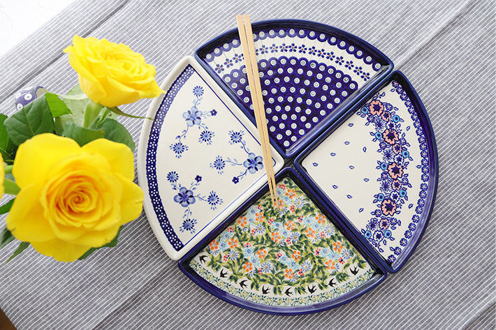 Lサイズ(35cm前後)のピザが1/4乗せられる、というユニークなフォルムが楽しいプレート。宅配ピザの取り分け用には勿論、4枚使って大きな円を描くような使い方や、扇形をイメージして和食に使うなど、アイデア次第でとても素敵なテーブルを演出できる優れもの。フラットなプレートで重ねやすいことも特長です。