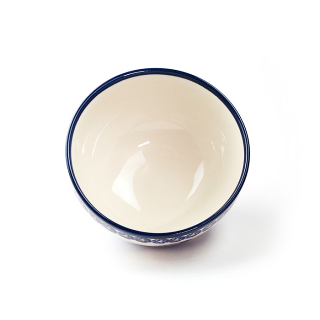 もともとは、韓国からのオファーで作られたご飯茶碗だと聞いています。内側に絵付けはなく、高台は少し低めです。見た感じの大きさは、VENA社で作ってもらったご飯茶碗の大と小の中間くらいですが、器の膨らみを考えると大きいほうと同じくらいです。ポーリッシュポタリーの老舗製造元の柄を楽しみたい方に特におすすめです。