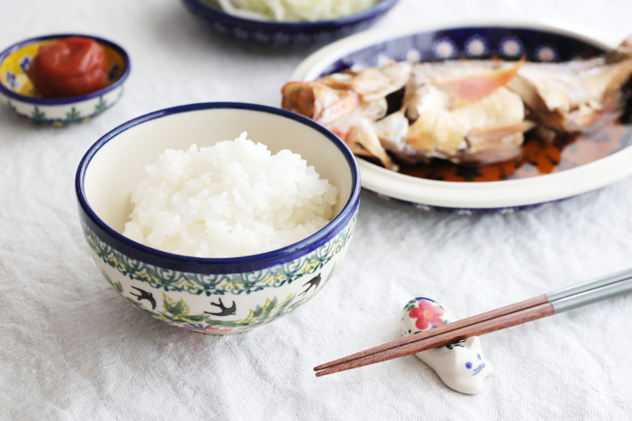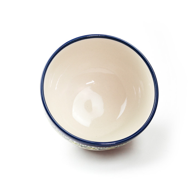 もともとは、韓国からのオファーで作られたご飯茶碗だと聞いています。内側に絵付けはなく、高台は少し低めです。見た感じの大きさは、VENA社で作ってもらったご飯茶碗の大と小の中間くらいですが、器の膨らみを考えると大きいほうと同じくらいです。ポーリッシュポタリーの老舗製造元の柄を楽しみたい方に特におすすめです。