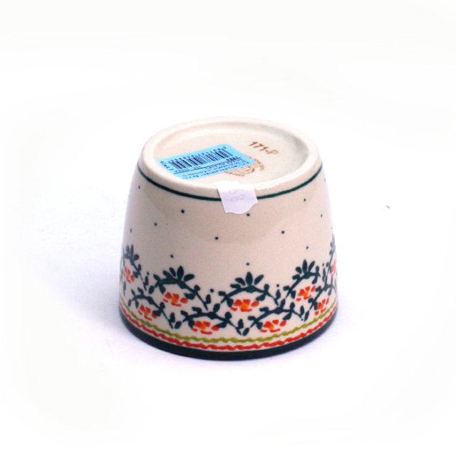 ケルセンとザクワディのコラボレーションで出来上がった日本向けのそば猪口です。もともと一器多様なフォルムなので、茶わん蒸し、プリン、酢の物や和え物用の小鉢としてなど、麺つゆ用以外にも幅広く利用できるところも特長のひとつ。日本の伝統的なフォルムに、ポーリッシュポタリーの丈夫さとザクワディの柄の組み合わせが嬉しくなるアイテムです。