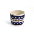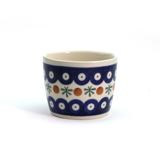 ケルセンとザクワディのコラボレーションで出来上がった日本向けのそば猪口です。もともと一器多様なフォルムなので、茶わん蒸し、プリン、酢の物や和え物用の小鉢としてなど、麺つゆ用以外にも幅広く利用できるところも特長のひとつ。日本の伝統的なフォルムに、ポーリッシュポタリーの丈夫さとザクワディの柄の組み合わせが嬉しくなるアイテムです。