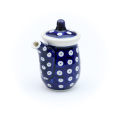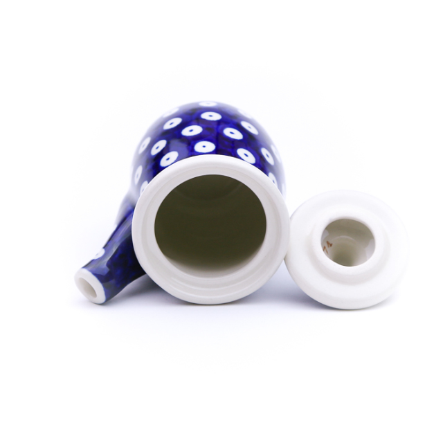 ケルセンのリクエストで日本向けに作ってもらった特別なフォルムです。日本では馴染みのある注ぐ器にボレスワヴィエツの老舗製造元であるザクワディの絵柄をのせた完成度の高い醤油さし。和食には欠かせない醤油を入れてテーブルでの利用を想定しています。蓋つきで込み入った小ぶりのフォルムですが、洗いやすく拭きやすい構造なので清潔に保てます。こまごまとした和の食卓を彩るためのアイテムとして、新鮮で珍しく大変魅力的に仕上がっています。