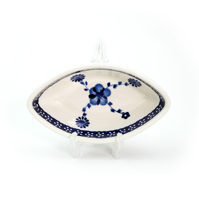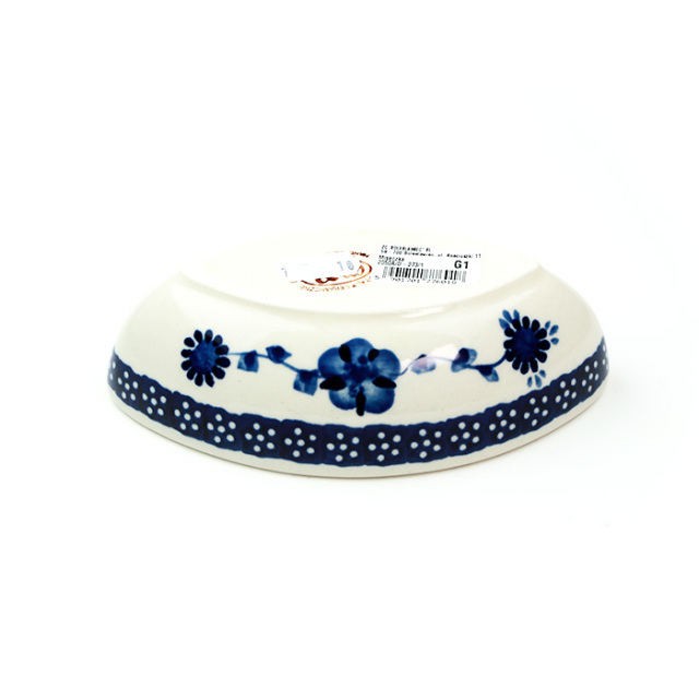 この花の模様は、実は歴とした伝統あるパターンデザインです。白地に青色の花の濃淡が映える仕上がりは、美しく上品な雰囲気を持っています。クラシック柄においては珍しく、花弁や枝や葉はスタンプではなく絵筆が多用されているため、同じ柄でも一つ一つが異なる唯一無二のポーリッシュポタリーの特長を強く味わえます。