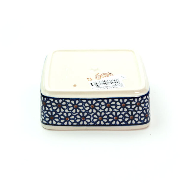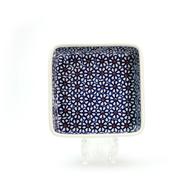 古くからポーリッシュポタリーではよく見られる花柄のスタンプで構成されたパターンデザインです。多くの製造元がこのスタンプを用いています。ザクワディ社のこの絵柄は、古くからある柄のひとつで、使い込むうちに愛着が湧いてくるところが大きな魅力になっています。