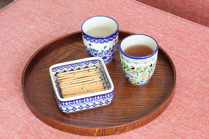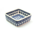 切り立ったサイドが角張った印象の、スクエアタイプの器です。田の字に並べて数種類のオードブルを盛り付けたり、コンパクトなお節料理用に使うにも納まりの良い形をしています。使い方次第でちょっと気取ってみたり、カジュアルなテーブルのアクセントにもなるユニークさが持ち味です。
