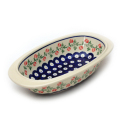 オーバルなフォルムがスタイリッシュなザクワディ社製のオーブン用の器です。両縁の部分に1cm程度の羽があり、熱くなったお皿をミトンで運ぶときにも抱えやすくなっています。丈夫で適度な深さを持ち、使い勝手も抜群。オーブン料理以外でも、メロン、スイカ、ぶどうなどをサーブするときにも活躍します。